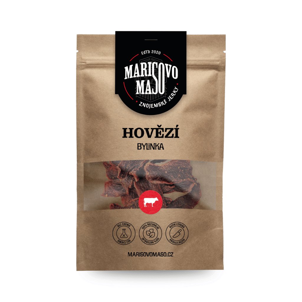 Sušené hovězí maso, balené dřevěné párátko, absorpční sáček kyslíku